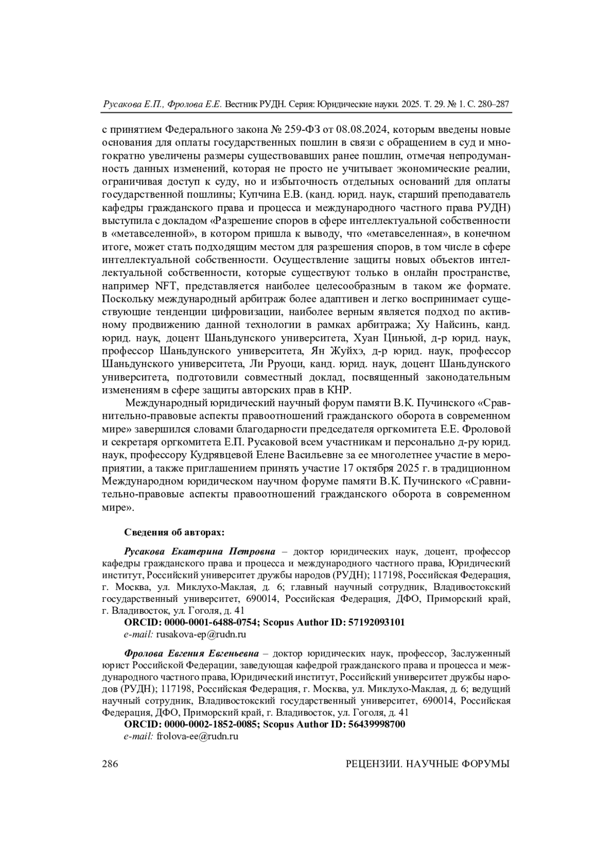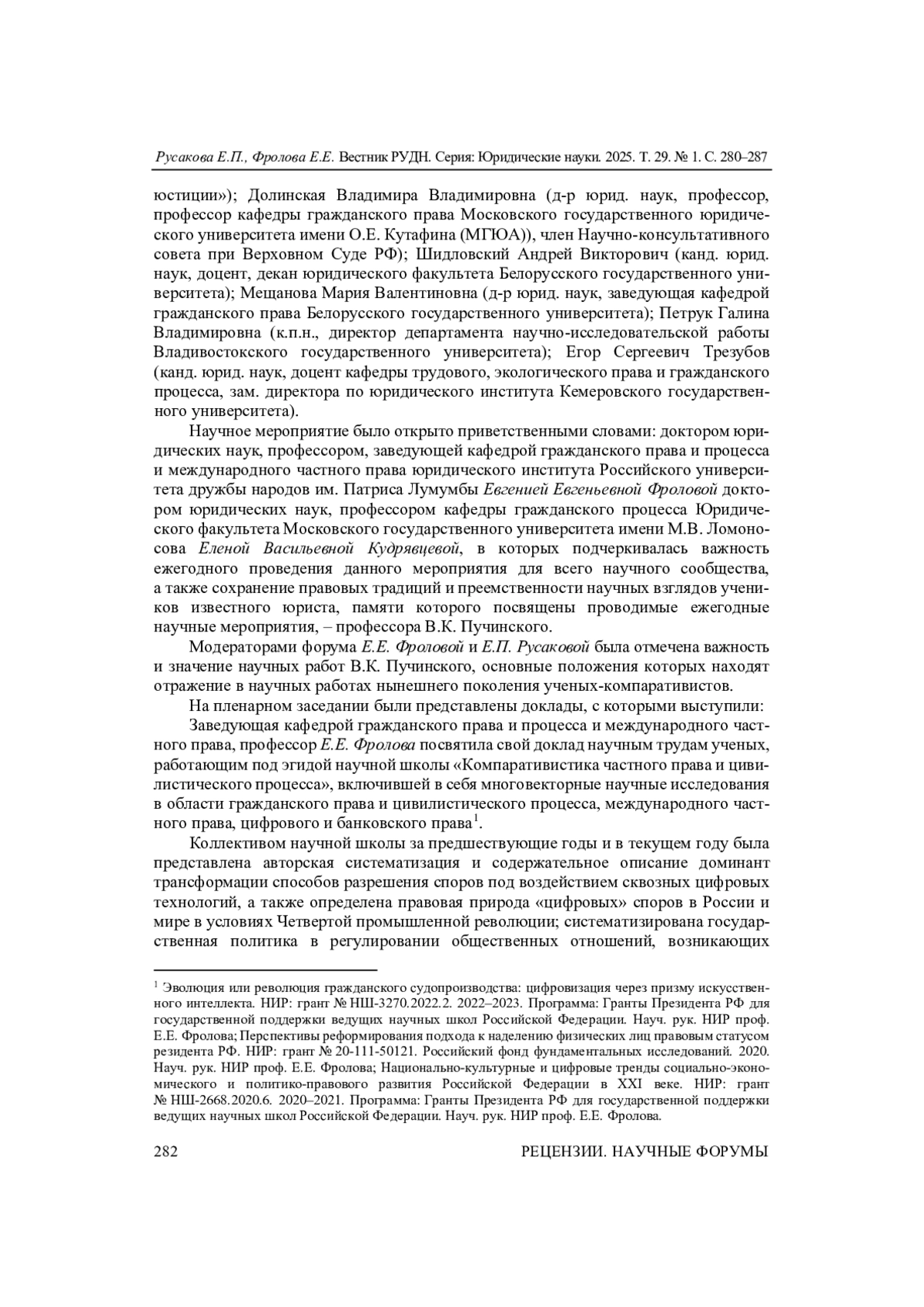 18 октября 2024 г. в стенах Российского университета дружбы народов имени Патриса Лумумбы – по многолетней традиции – состоялся Международный научный юридический форум памяти Заслуженного деятеля науки РФ, профессора, выдающегося российского компаративиста, специалиста в области гражданского процессуального права России и зарубежных стран Василия Клементьевича Пучинского «Сравнительно-правовые аспекты правоотношений гражданского оборота в современном мире», организованный кафедрой гражданского права и процесса и международного частного права Юридического института РУДН.