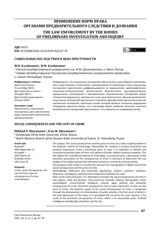 23. Клейменов М. П. Криминальные сериалы современной России / М. П. Клейменов, И. М. Клейменов // Всероссийский криминологический журнал. - 2022. - № 4. - С. 429-438.