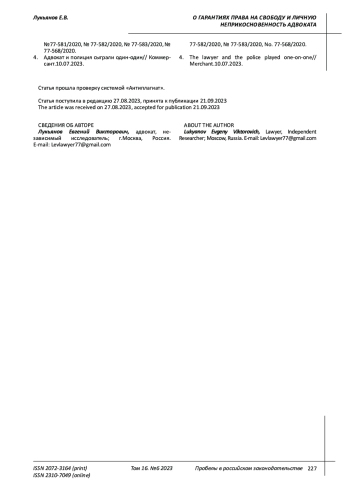 4. Адвокат и полиция сыграли один-один// Коммерсант.10.07.2023.