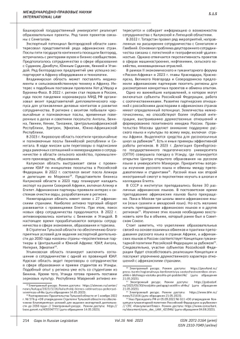 3. Алешин К.А., Сугаков Г.К., 2022. Новые контуры партнерства России и Африки: экономическое, политическое, культурно-гуманитарное и молодежное измерения // Вестник Московского университета. Серия 25: Международные отношения и мировая политика. 2022. Т. 14. № 1. С. 192-200. DOI: 10.48015/2076-7404-2022-14-1-192-200 EDN: URXSOM