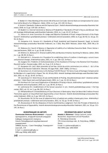 21. Лухманов М. И. Установление фактической причинной связи в деликте / М. И. Лухманов // Вестник гражданского права. - 2021. - Т. 21, № 5. - С. 86-132.