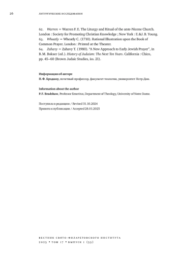 9. 	Bradshaw P. (1979). “Authority and Freedom in the Early Liturgy”, in K. Stevenson (ed.). Authority and Freedom in Liturgy: Grove Liturgical Study, n. 17, Bramcote (Notts.).