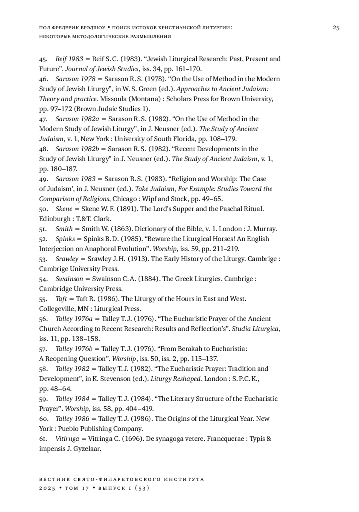 44. 	Reif S. C. (1982). “Some liturgical issues in the Talmudic Sources”. Studia Liturgica, iss. 15, pp. 188-206.