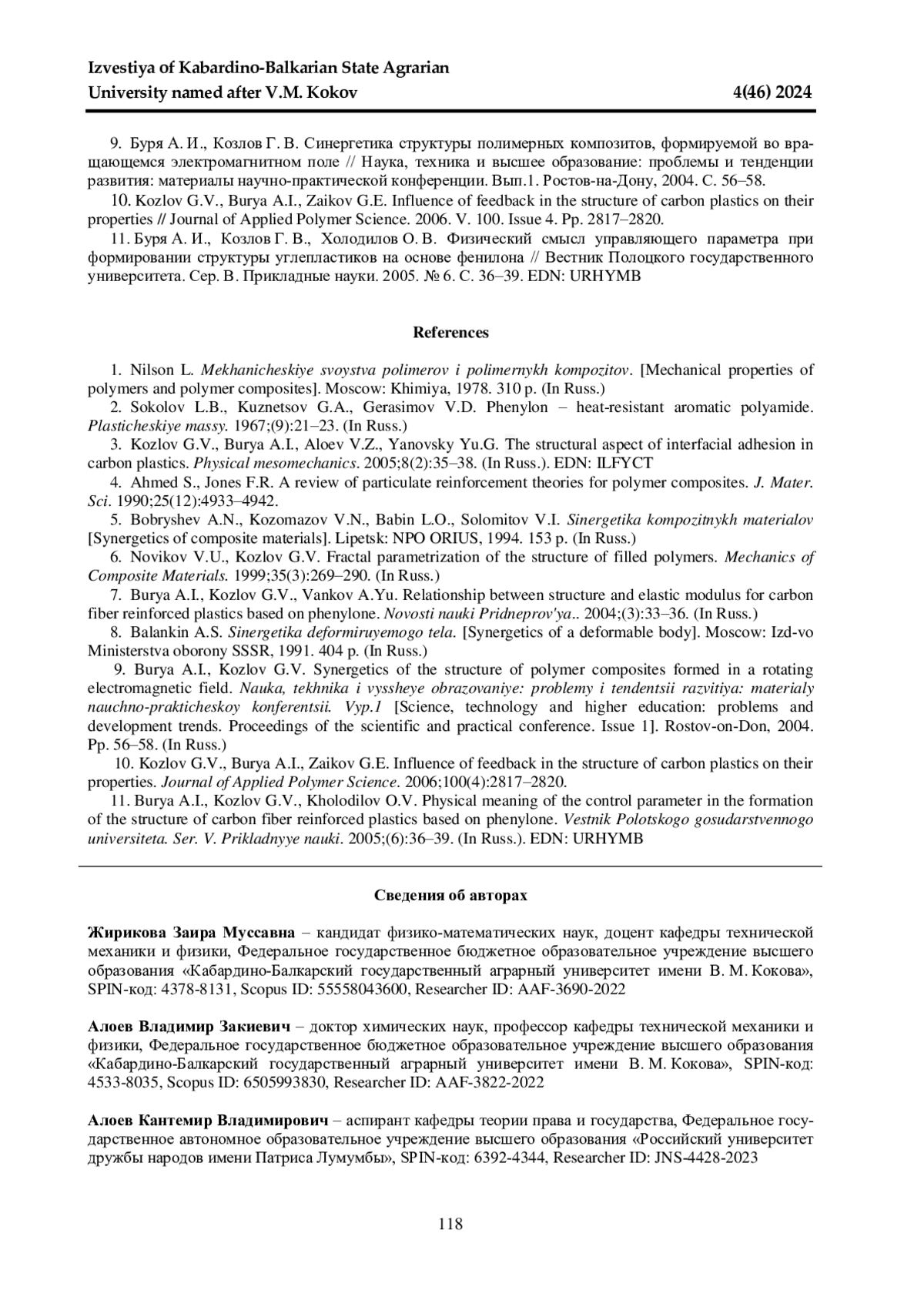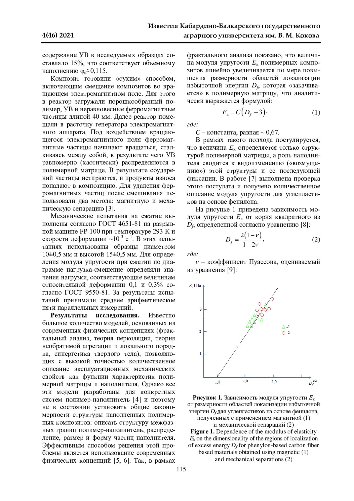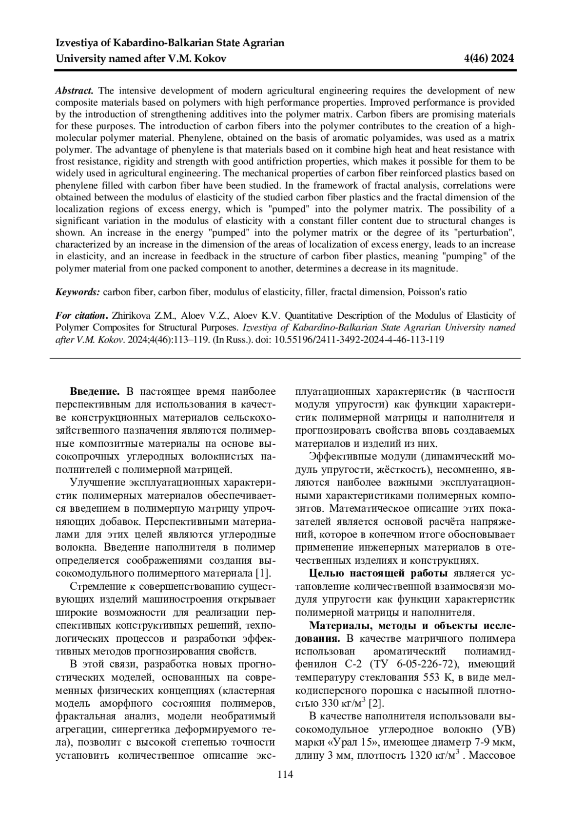 ЖИРИКОВА З. М., АЛОЕВ В. З., АЛОЕВ К. В. КОЛИЧЕСТВЕННОЕ ОПИСАНИЕ МОДУЛЯ УПРУГОСТИ ПОЛИМЕРНЫХ КОМПОЗИТОВ КОНСТРУКЦИОННОГО НАЗНАЧЕНИЯ // ИЗВЕСТИЯ КАБАРДИНО-БАЛКАРСКОГО ГОСУДАРСТВЕННОГО АГРАРНОГО УНИВЕРСИТЕТА ИМ. В. М. КОКОВА. 2024. № 4 (46)