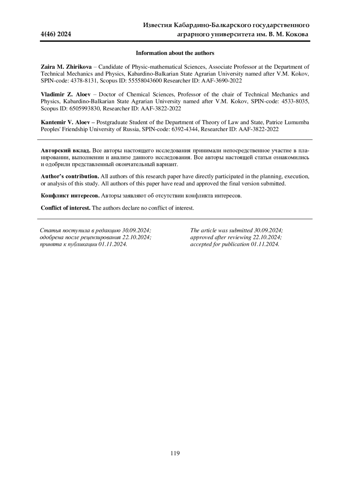 Автор (ы): Жирикова Заира Муссавна, Алоев Владимир Закиевич, Алоев Кантемир Владимирович
