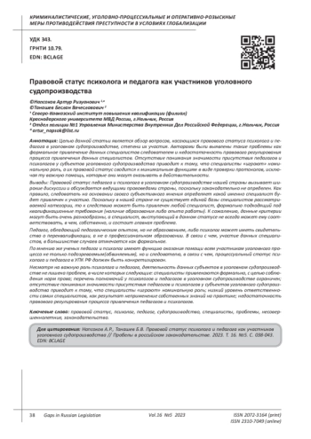 18. Янин М.Г. Правовой статус педагога, психолога и законного представителя в российском уголовном судопроизводстве // Вестник Челябинского государственного университета. Серия: Право. 2020. №2. С. 39-40. EDN: OQMOIY