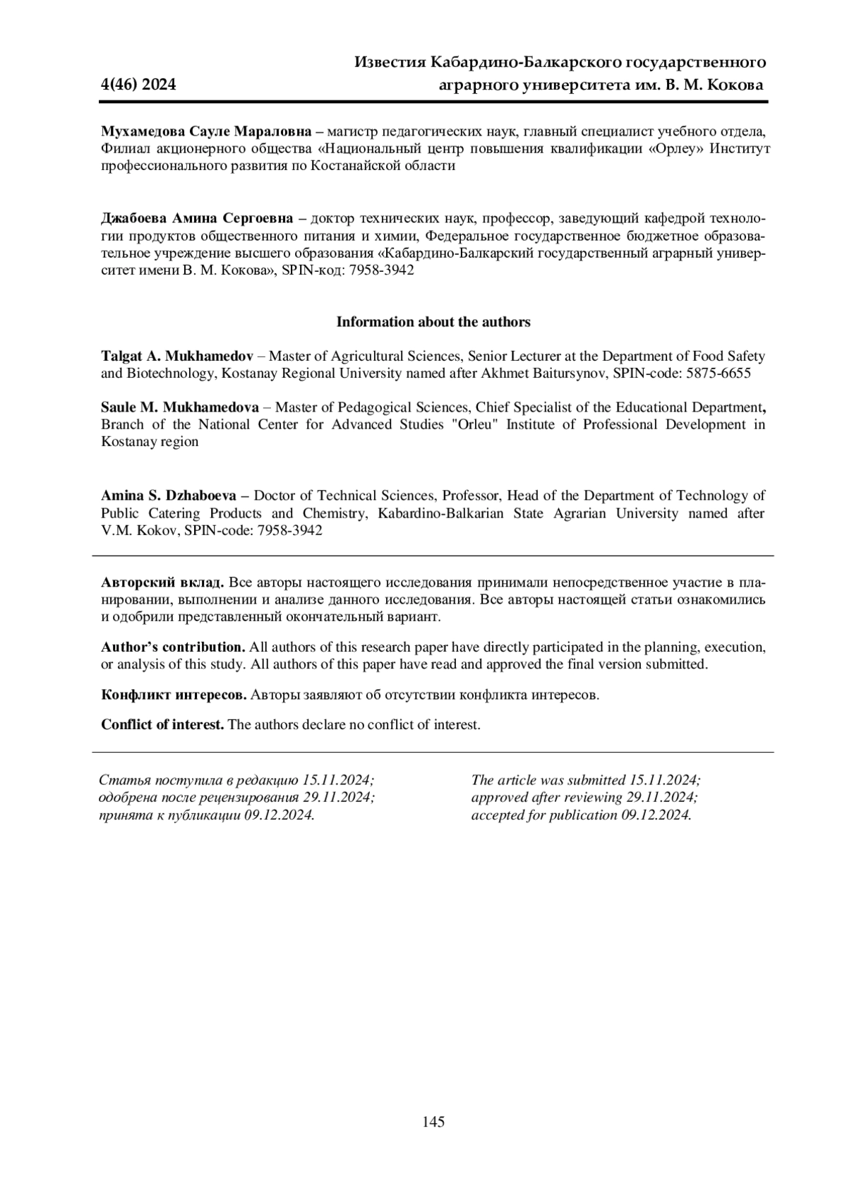 Автор (ы): Мухамедов Талгат Амангалиевич, Мухамедова Сауле Мараловна, Джабоева Амина Сергоевна