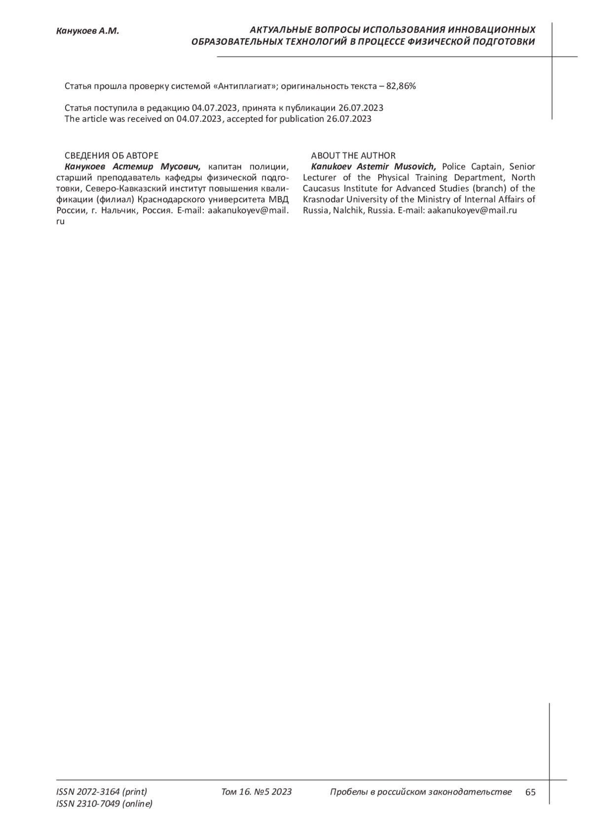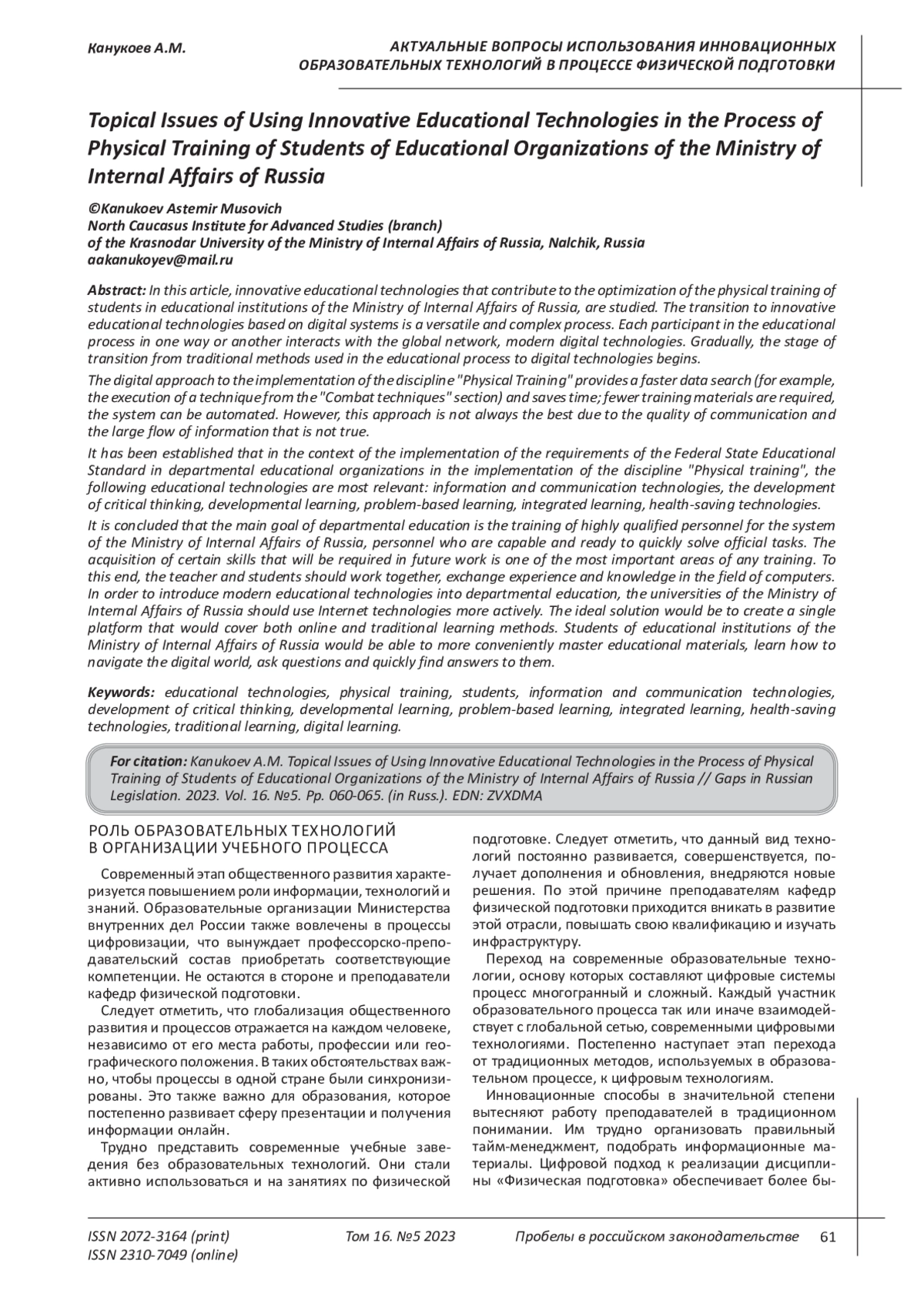 8. Мешев И.Х. Применение современных образовательных технологий на занятиях по физической подготовке // Образование. Наука. Научные кадры. 2021. № 1. С. 196-198. EDN: VYXFKS
