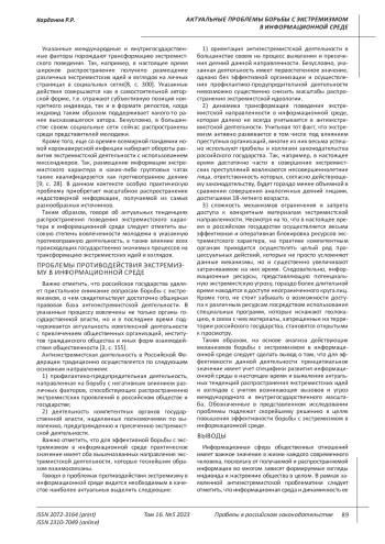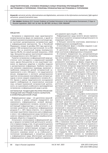 Статья: АКТУАЛЬНЫЕ ПРОБЛЕМЫ БОРЬБЫ С ЭКСТРЕМИЗМОМ В ИНФОРМАЦИОННОЙ СРЕДЕ (2023)