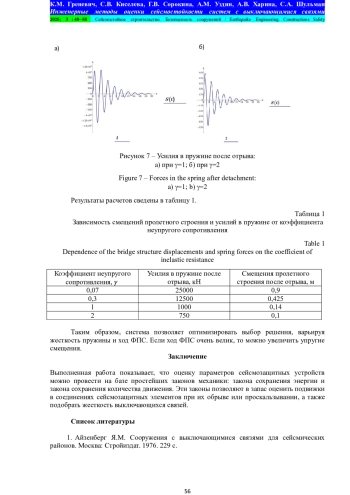 Обсуждение. Хотя рассматриваемая система сейсмоизоляции существенно нелинейна, ее расчет может быть выполнен достаточно просто, не прибегая к использованию сложных программных комплексов. В статье авторы использовали классические законы механики и средства MathCad или MatLab. Работа выполнена в Петербургском университете путей сообщения и ОАО «Стройкомплекс-5».