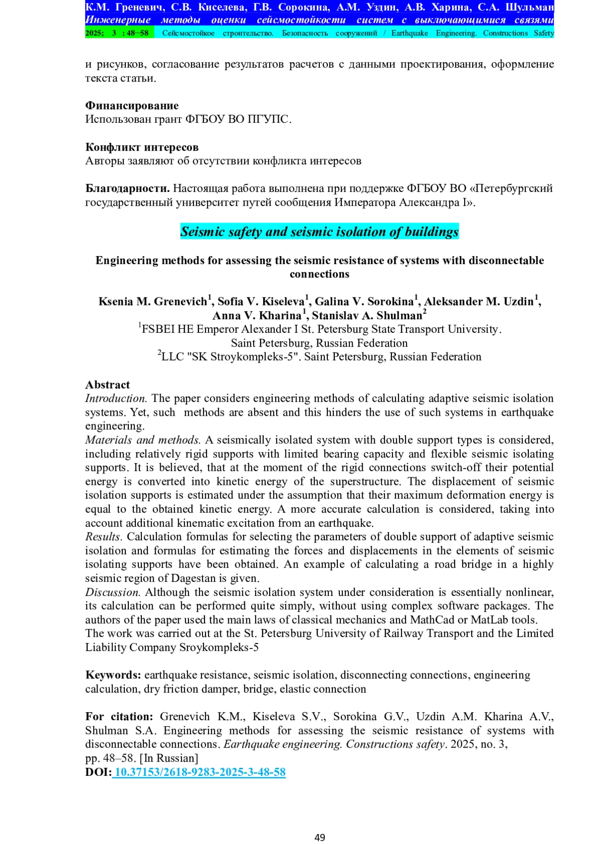 4. Uzdin A.M., Prokopovich S.V. Some principles of generating seismic input for calculating structures. E3S Web of Conferences 157, 06021 (2020), KTTI-2019,. DOI: 10.1051/e3sconf/202015706021