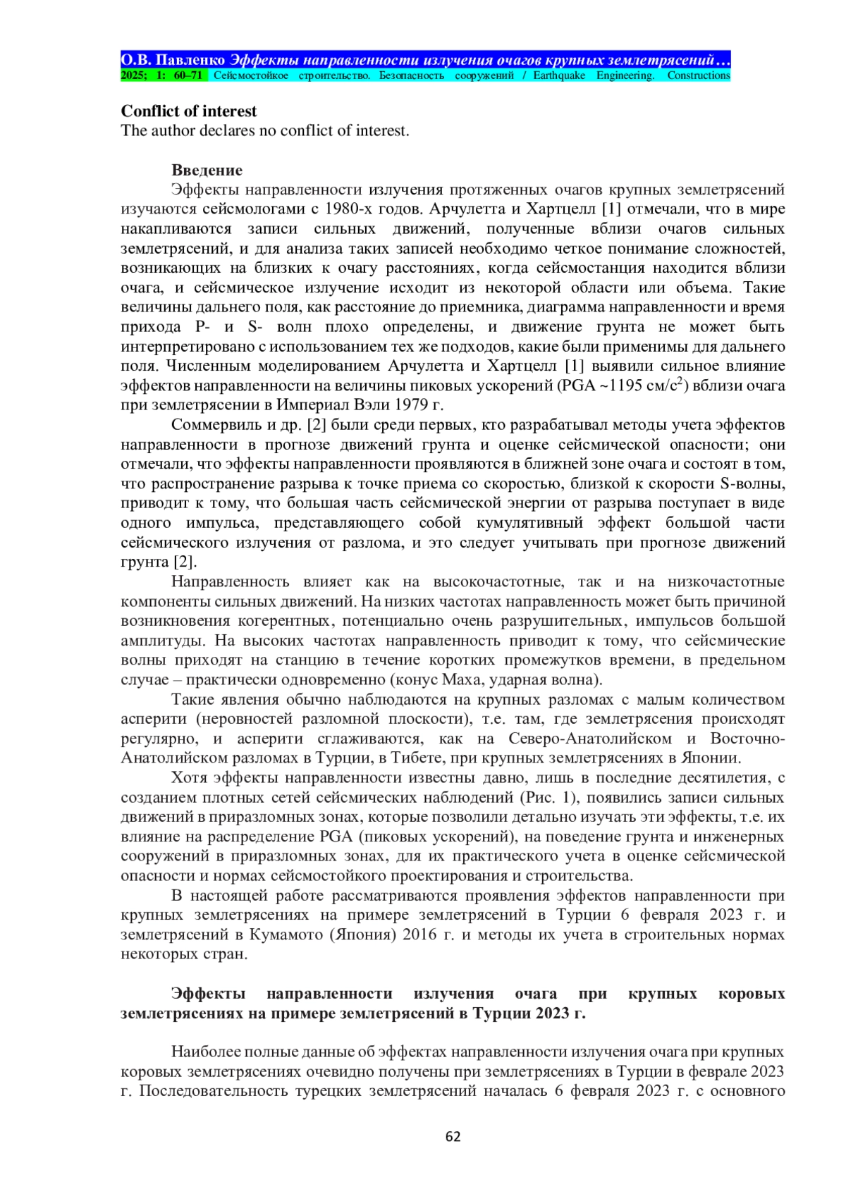 25. Tothong P., Cornell C. A., Baker J. Explicit directivity-pulse inclusion in probabilistic seismic hazard analysis. Earthquake Spectra. 2007, vol. 23, no. 4, pp. 867-891. DOI: 10.1193/1.2790487