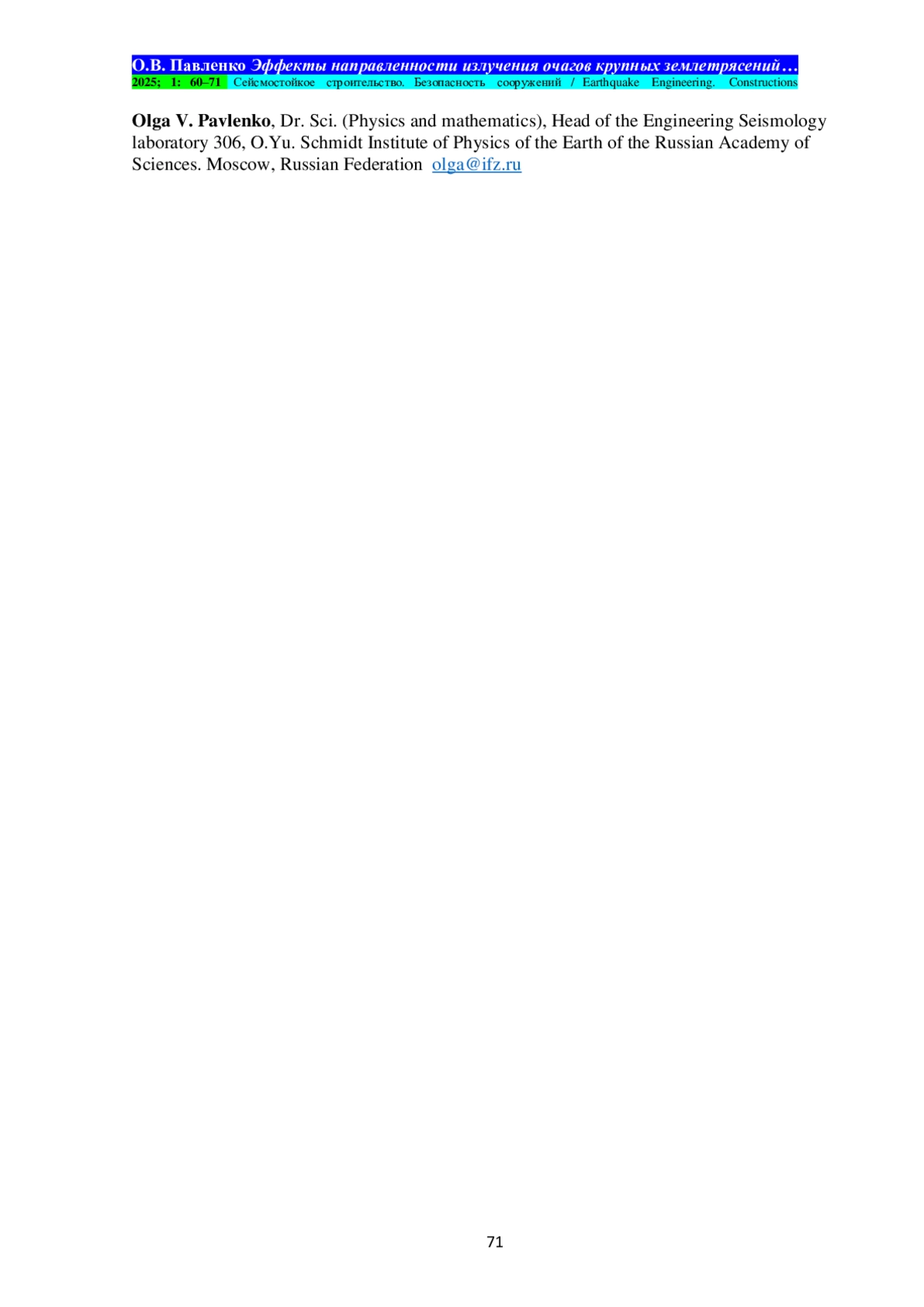 11. Spudich P., Chiou B.S. Directivity in NGA earthquake ground motions: Analysis using isochrone theory. Earthquake Spectra. 2008, vol. 24, no. 1, pp. 279-298. DOI: 10.1193/1.2928225