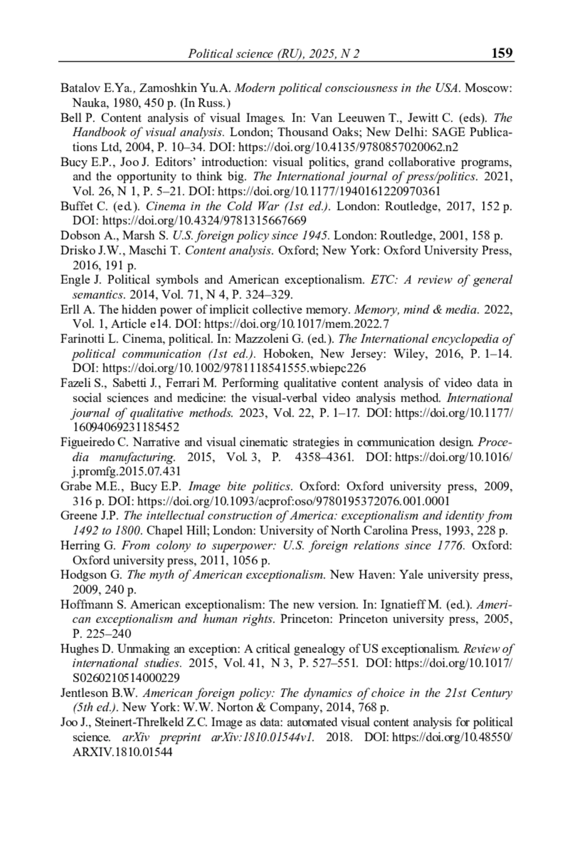 4. Малинова О.Ю. Мультимедийные выставки как предмет политологического исследования: вызов мультимодальности // Политическая наука. - 2024. - № 4. - С. 17-44. - https://doi.org/http://www.doi.org/10.31249/poln/2024.04.01