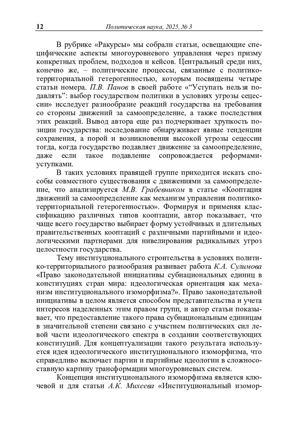 Вступительное слово от редакции журнала “ПОЛИТИЧЕСКАЯ НАУКА” к выпуску №3 (2025г.)
