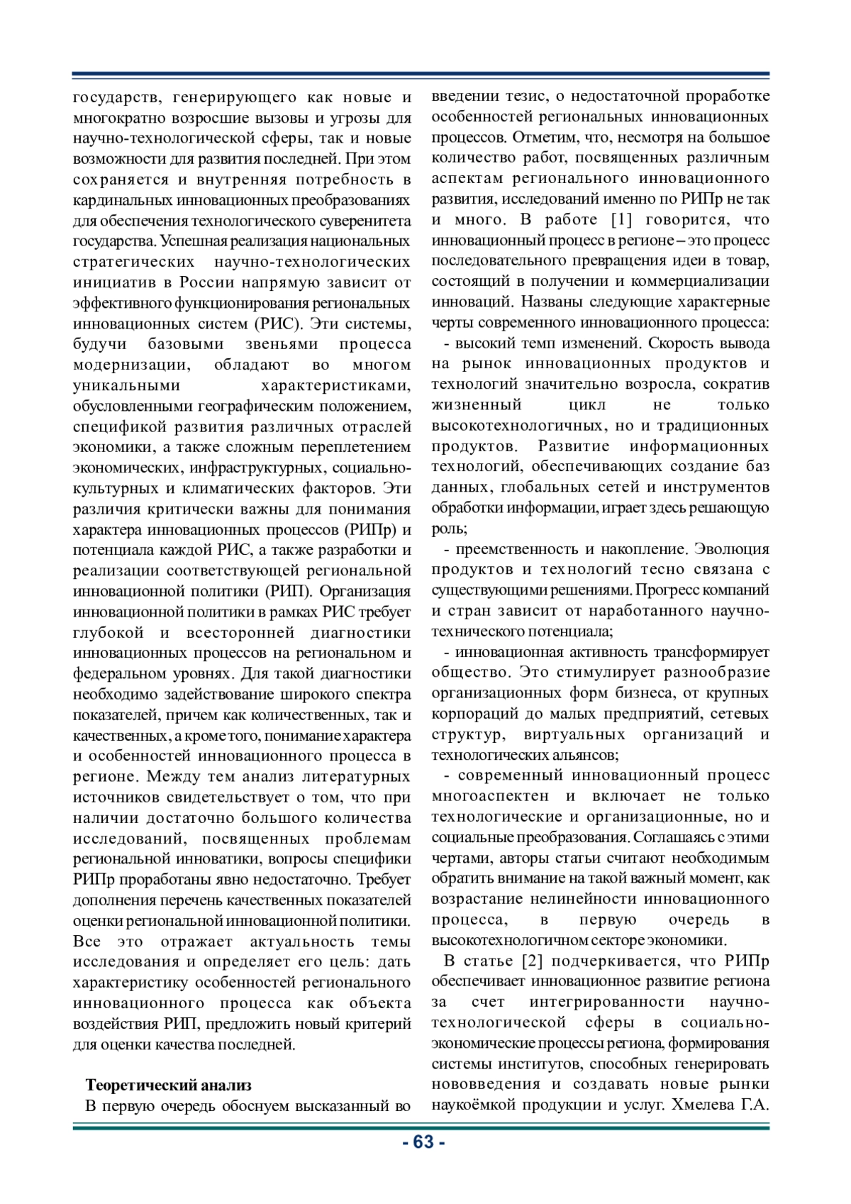 3. Хмелева Г.А. Инновационные процессы в регионах России // Вестник СамГУ. 2014. № 6 (17). С.9- 18.