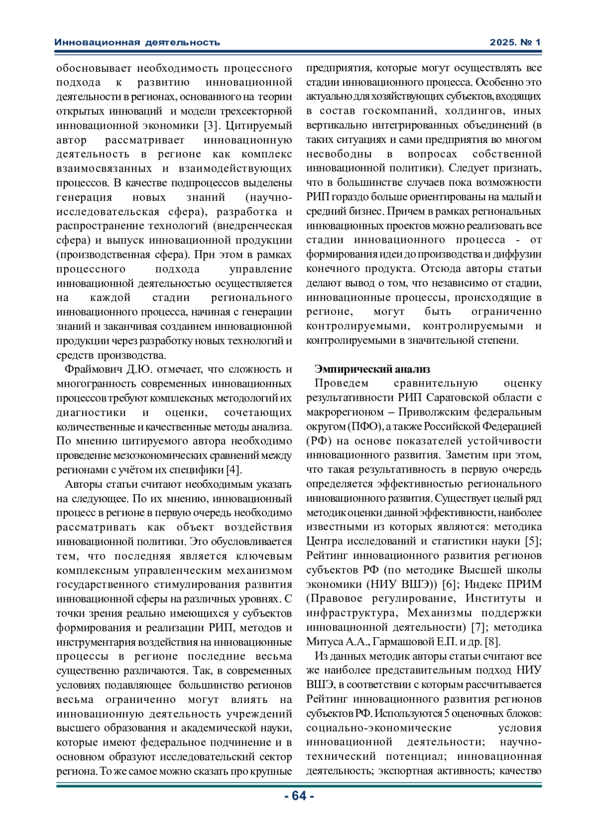 8. Митус А.А., Гармашова Е.П., Баранов А.Г., Дребот А.М. Методика оценки инновационного развития региона (на примере регионов Южного федерального округа) // Креативная экономика. 2020. Т. 14. № 12. С. 3259-3276. EDN: PYMNDA