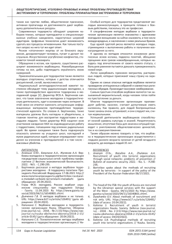 Статья: МЕТОДЫ ВЕРБОВКИ МОЛОДЕЖИ В ТЕРРОРИСТИЧЕСКИЕ ОРГАНИЗАЦИИ (2023)