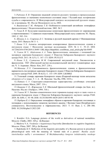 8. Улаков М. З., Абайханова А. А. Типы фразеологизмов, связанных с зоонимией (на материале карачаево-балкарского языка) // Известия Кабардино-Балкарского научного центра РАН. 2013. № 1(51). С. 167-173. EDN: PUYLUT