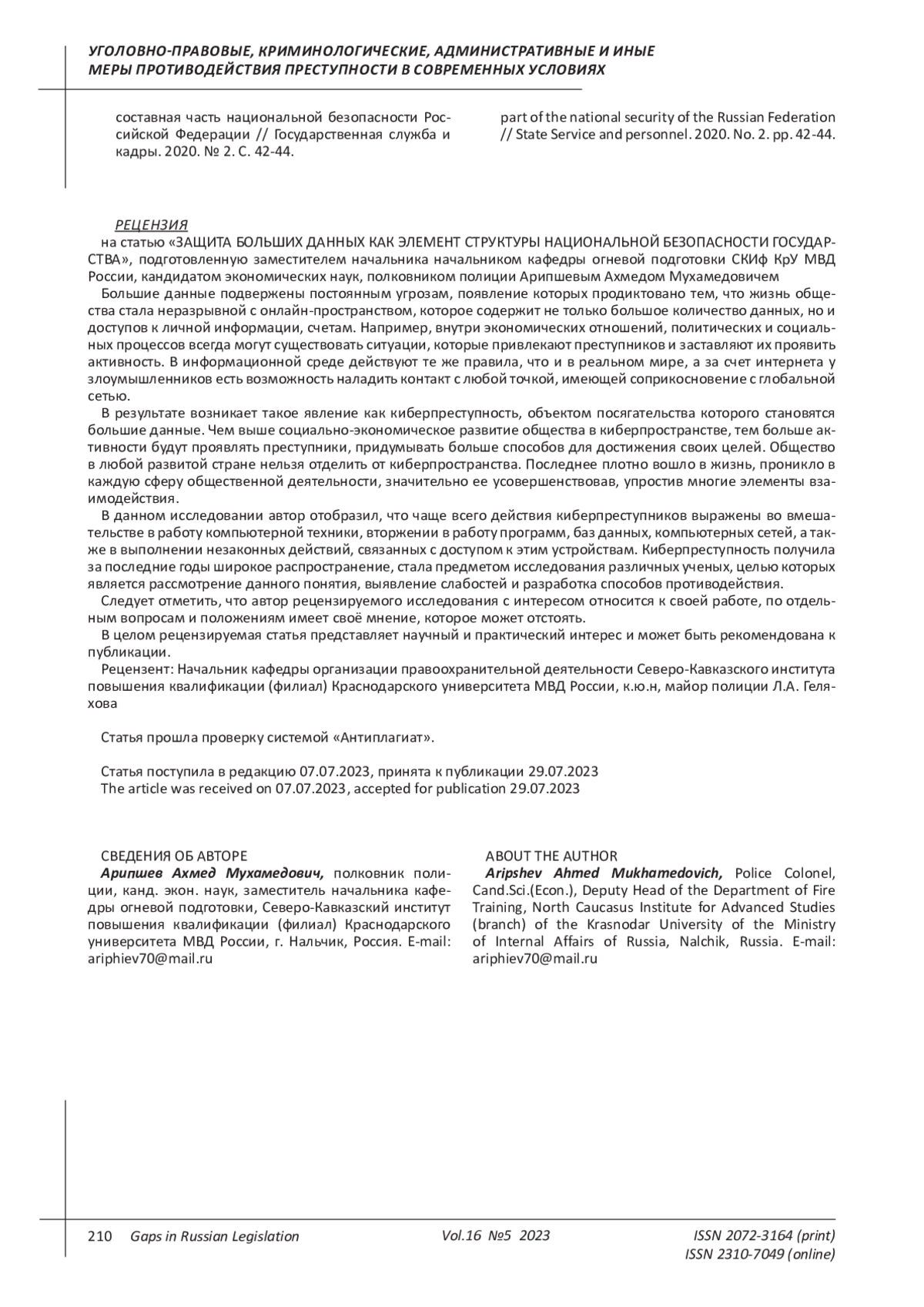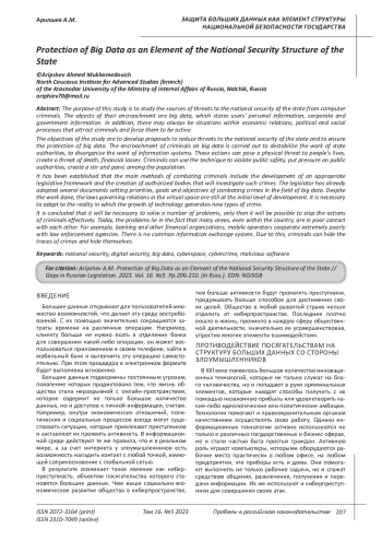 3. Бурхавецкий И.А., Долгачев Н.О., Решаев М.А. Защита личной информации в эпоху больших данных // Финансовая экономика. 2023. № 1. С. 11-13. EDN: CGCYST