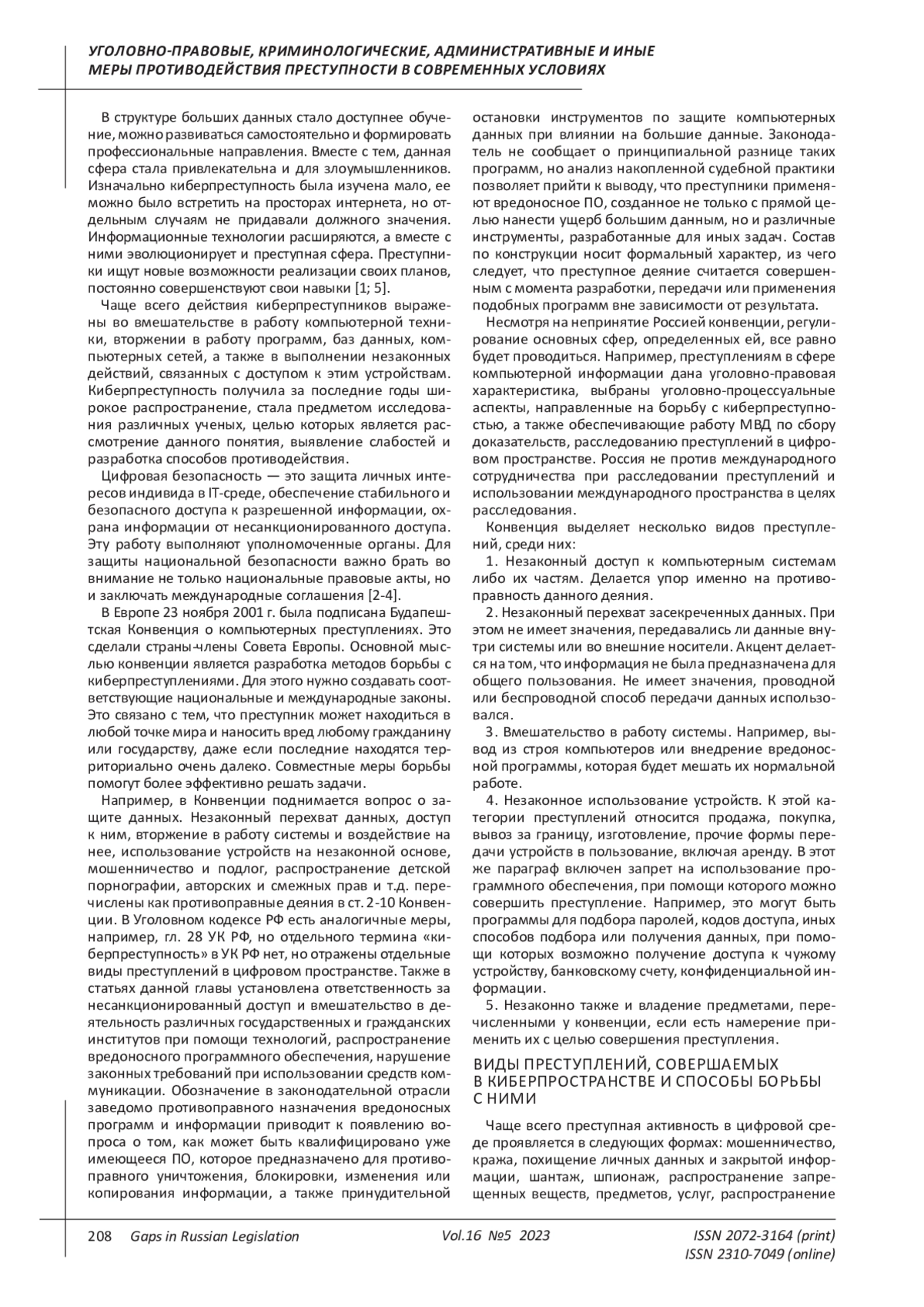 2. Бесхмельнов М.И., Симакова Д.Е., Ахонин А.С. Проблемы развития киберпреступности в современных реалиях // Закон и власть. 2019. № 4. С. 60-62. EDN: XTCCOS