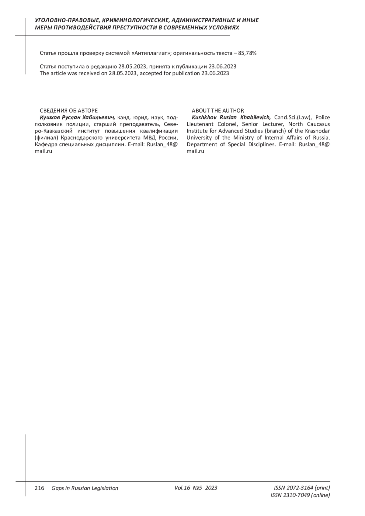 Shpagina E.M. Formation of digital competence among police officers / Petrovka, 38. - No. 33 (9585) dated September 05, 2017.