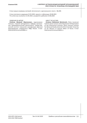 Fundamentals of the fight against organized crime: monograph / ed. Ovchinsky, V. E. Eminov, N. P. Yablokov. M.: INFRA-M, 1996. 400 p.