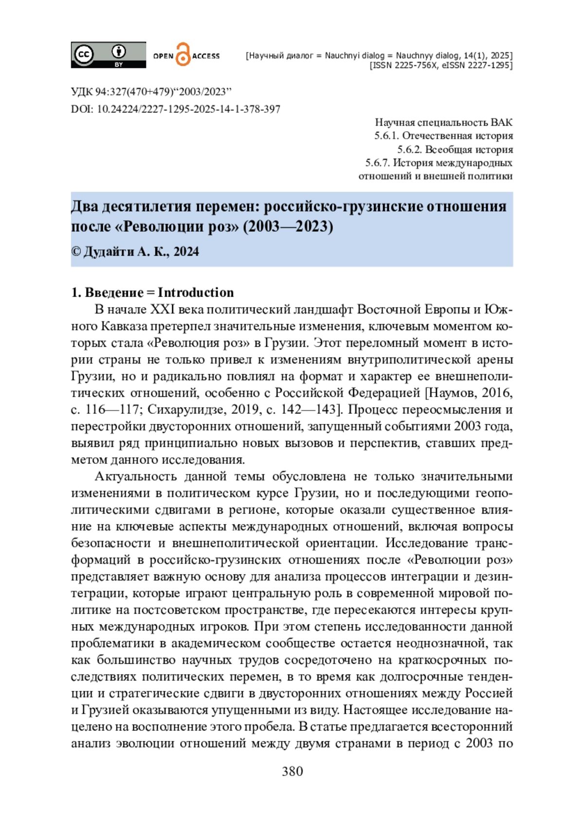 32. Сихарулидзе А. Т. Россия как фактор внутренней политики Грузии / А. Т. Сихарулидзе // Центральная Евразия. - 2019. - № 1 (3). - С. 135-153.