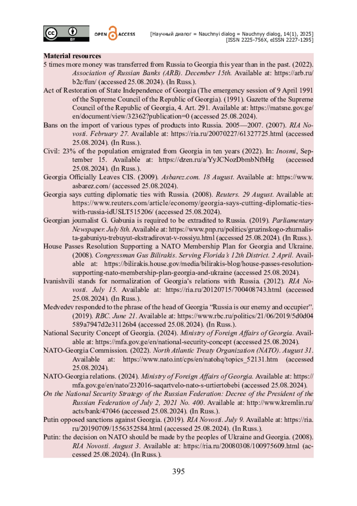 8. Медведев ответил на фразу главы Грузии «Россия - наш враг и оккупант» [Электронный ресурс] // РБК. - 2019. - 21 июня. - Режим доступа : https://www.rbc.ru/politics/21/06/2019/5d0d04589a7947d2e31126b4 (дата обращения 25.08.2024).