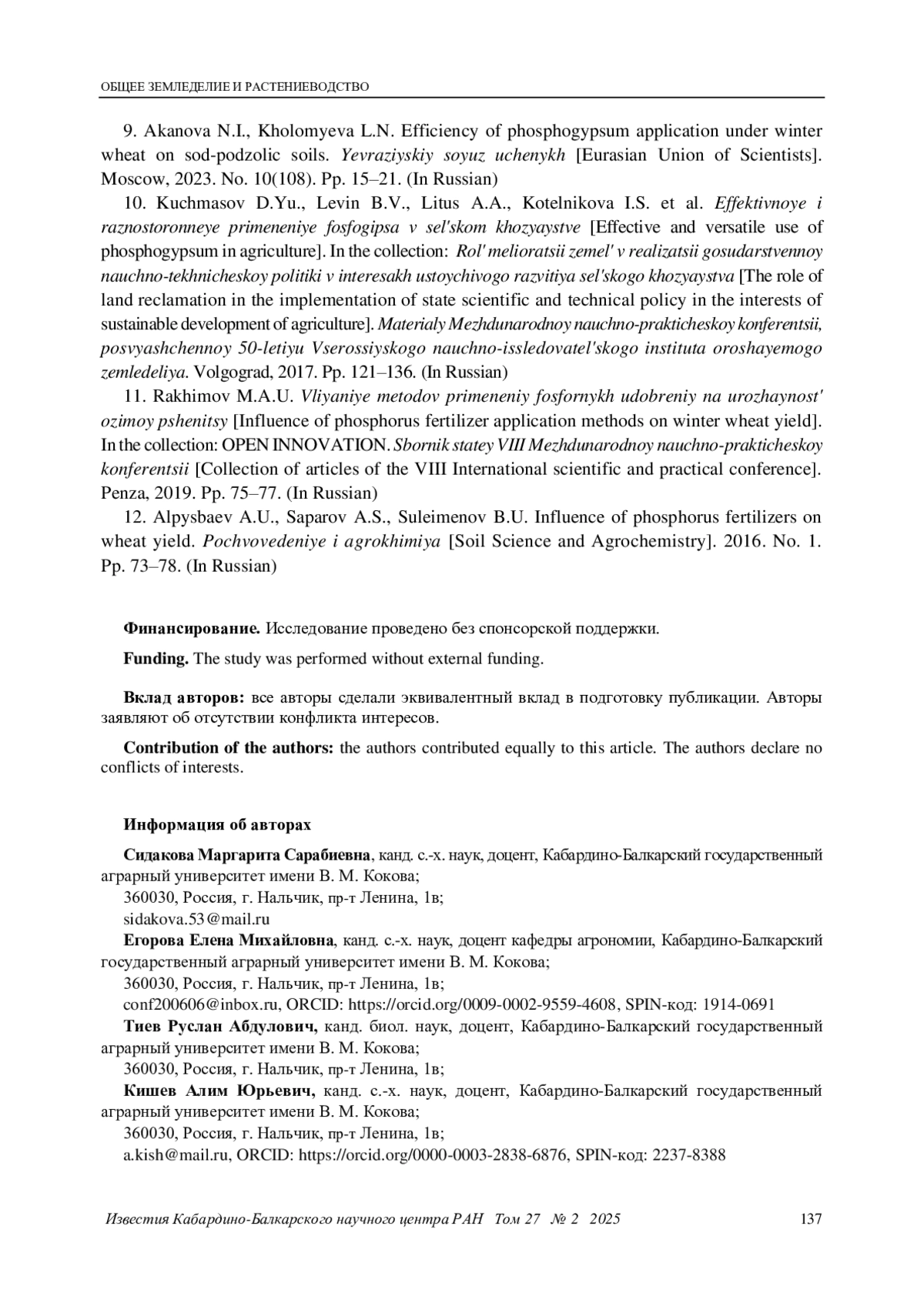 9. Аканова Н. И., Холомьева Л. Н. Эффективность применения фосфогипса под озимую пшеницу на дерново-подзолистых почвах // Евразийский союз ученых. М., 2023. № 10(108). С. 15-21. EDN: DSWRNV