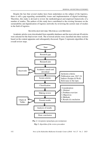 Устойчивость цифровых логистических сетей – это сложный вопрос, который включает в себя экономическую эффективность, социальную ответственность и сохранение окружающей среды. В связи с этим растет спрос на решение логистических операций с использованием концепций цифровизации и устойчивого развития. Несмотря на быстрое развитие логистической отрасли, все еще существует пробел в исследованиях, касающихся трансформации логистики в устойчивую цифровую логистику. Таким образом, эта статья направлена на обзор эмпирических и методологических рамок текущего состояния исследований цифровой логистической сети и устойчивости с особым упором, помимо прочего, на сельскохозяйственную логистику. Для обзора и всестороннего анализа широкого круга задач были выбраны авторитетные академические источники. В результате обзора были выявлены некоторые инновационные методы, надежные модели и изучен ряд важных факторов. Оценены достоинства и недостатки источников обзора. Будущие исследования в этой области могут включать эмпирический анализ с широким охватом для анализа логистических операций различных секторов с точки зрения цифровизации и устойчивости.