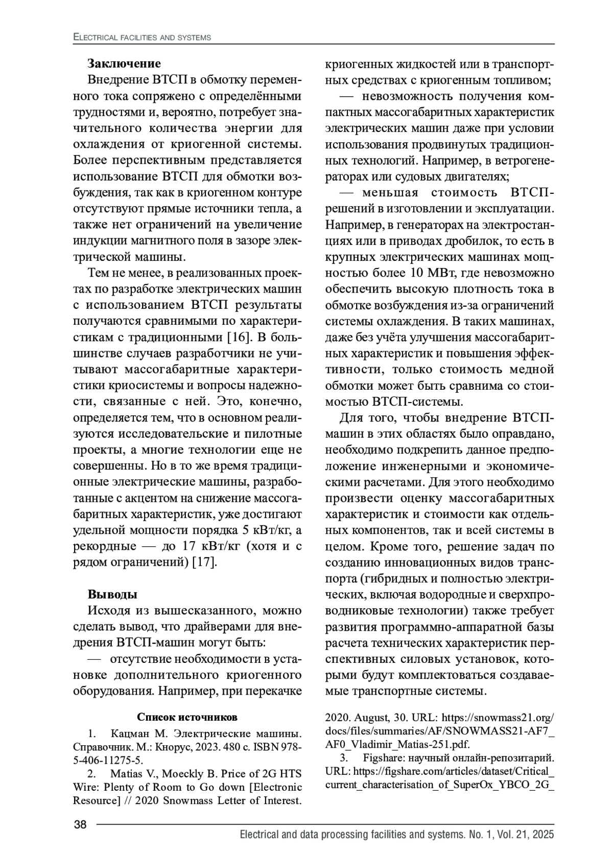 16. Ковалев К., Иванов Н., Кадеров В., Малевич Н. ВТСП электрические машины: актуальные проекты и перспективные области применения HTS Electric Machines: Current Projects and Promising Application Fields // Электричество. 2023. № 8. С. 4-12. DOI: 10.24160/0013-5380-2023-8-4-12 EDN: ZSGMMC