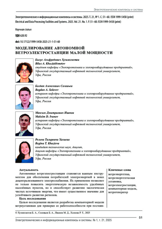 3. Колосов Р.В., Титов В.Г., Мирясов Г.М. Моделирование ветроэнергетически установок // Вестник Чувашского университета. 2014. № 2. С. 27-32. EDN: SJKDHH