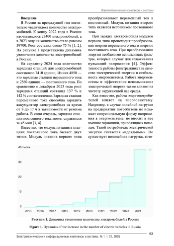 В России за предыдущий год значительно увеличилось количество электромобилей. К концу 2022 года в России насчитывалось 23400 электромобилей, а в 2023 году их количество стало равным 39700. Рост составил около 75 % [1, 2]. На рисунке 1 представлена динамика увеличения количества электромобилей в России