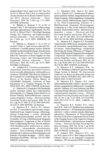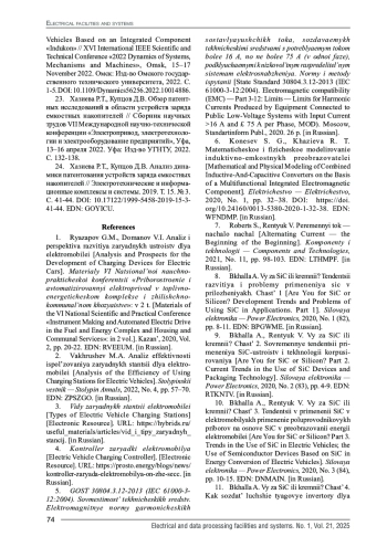 1. Рязапов Г.М., Доманов В.И. Анализ и перспектива развития зарядных устройств для электромобилей // Приборостроение и автоматизированный электропривод в топливно-энергетическом комплексе и жилищно-коммунальном хозяйстве: матер. VI Национальн. науч.- практ. конф.: в 2 т. Казань, 2020. Т. 2. С. 20-22. EDN: RVEEUM