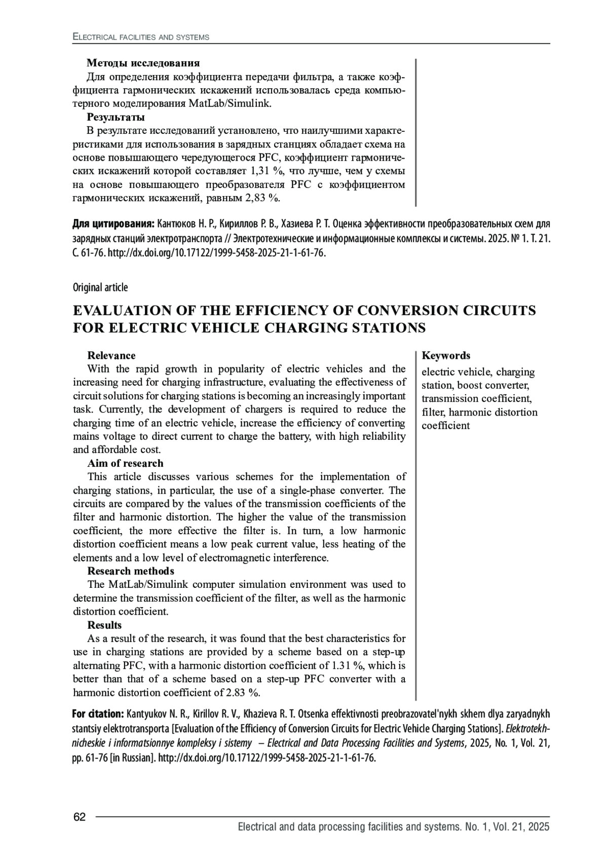 19. Khazieva R.T., Aflyatunov R.R., Vasil’ev P.I. Modeling an Efficient Capacitive Storage Charge System in MatLab // The International Conference on Battery for Renewable Energy and Electric Vehicles (ICB-REV) 2022. 2023, 2833 (1), 020039. DOI: 10.1063/5.0151635 EDN: UPRVDC