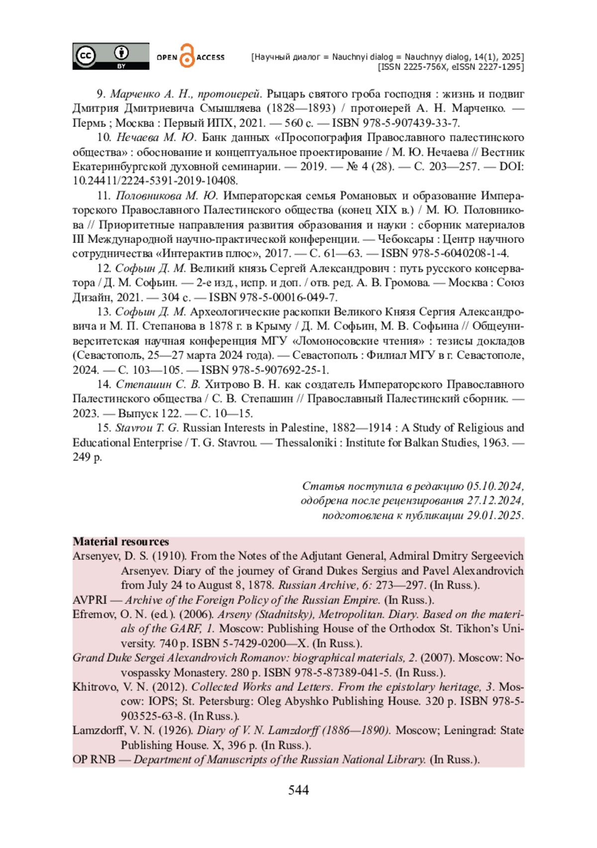 28. Степашин С. В. Хитрово В. Н. как создатель Императорского Православного Палестинского общества / С. В. Степашин // Православный Палестинский сборник. - 2023. - Выпуск 122. - С. 10-15.