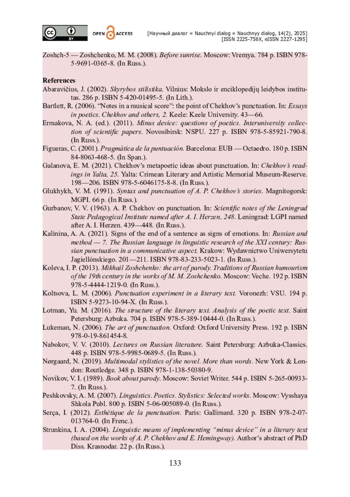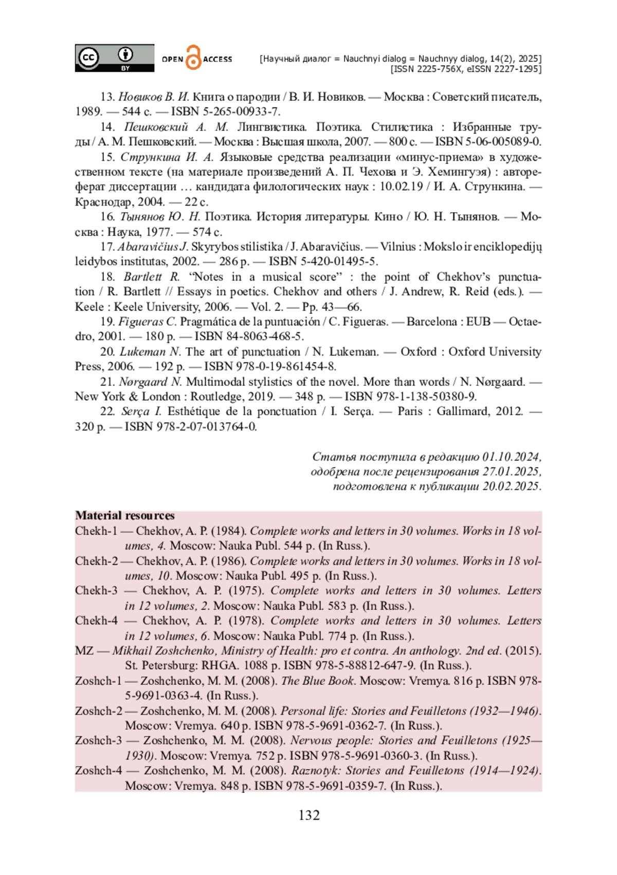 3. Галанова Е. М. Метапоэтические представления А. П. Чехова о пунктуации / Е. М. Галанова // Чеховские чтения в Ялте / Под ред. О. О. Пернацкой. - Ялта : Крымский литературно-художественный мемориальный музей-заповедник, 2021. - Выпуск 25. - С. 198-206. - ISBN 978-5-6046175-8-8.