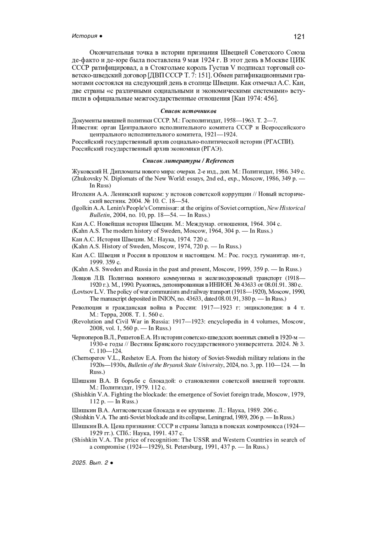 12. Черноперов В.Л., Решетов Е.А. Из истории советско-шведских военных связей в 1920-м - 1930-е годы // Вестник Брянского государственного университета. 2024. № 3. С. 110-124. EDN: PRGFBZ