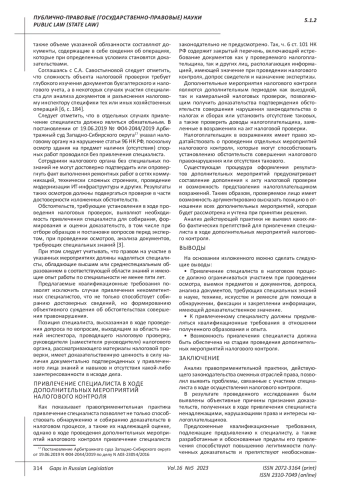 Цель исследования. В научно-исследовательской работе рассматриваются проблемы, связанные привлечением специалиста для оказания содействия при проведении мероприятий налогового контроля и получения допустимых и достоверных доказательств. Специалист, не заинтересованный в исходе дела, обладает необходимыми знаниями и навыками, а также практическим опытом, использование которого способствует выявлению и закреплению надлежащих доказательств. Несмотря на высокую доказательственную способность, источники информации, полученные при участии специалиста, исключаются из состава допустимых и достоверных, что приводит к отмене решения налогового органа. Выводы. В результате проведенного исследования были выявлены объективные причины признания доказательств, полученных в ходе привлечения специалиста, ненадлежащими, нарушающими права и интересы налогоплательщиков. Предложенные квалификационные требования, подлежащие предъявлению к специалисту, а также разработанные и обоснованные пределы его привлечения способствуют повышению легитимности полученных доказательств и препятствует необоснованному использованию специалиста для проведения экспертизы.