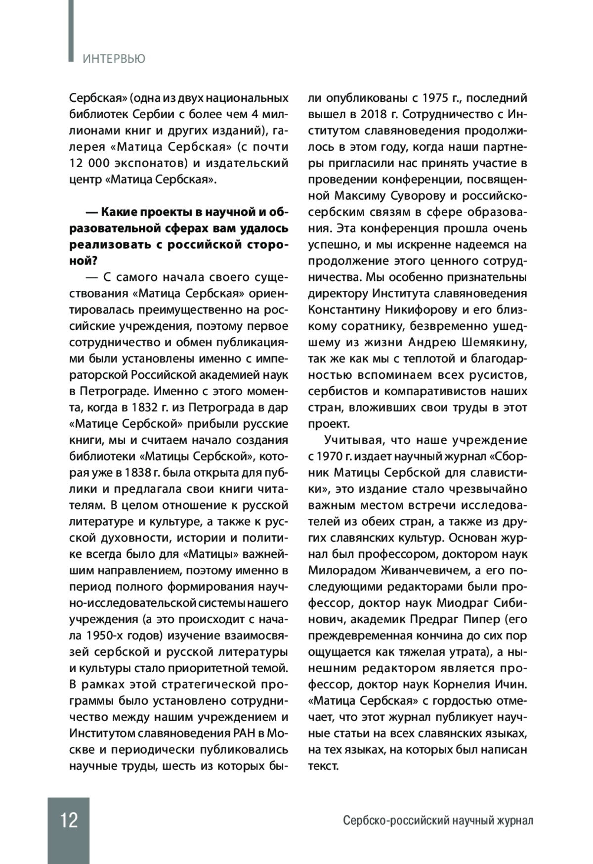 — Мой жизненный путь отмечен стремлением сохранить оба измерения своей деятельности — как литературно-художественное, так и литературно-научное. В этом смысле в сербской культуре я принадлежу к узкому кругу ярко выраженных «двоедушных людей», как их называл великий рассказчик, прозаик и историк литературы Милорад Павич.