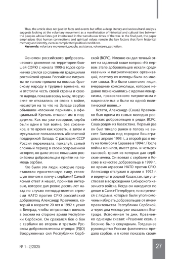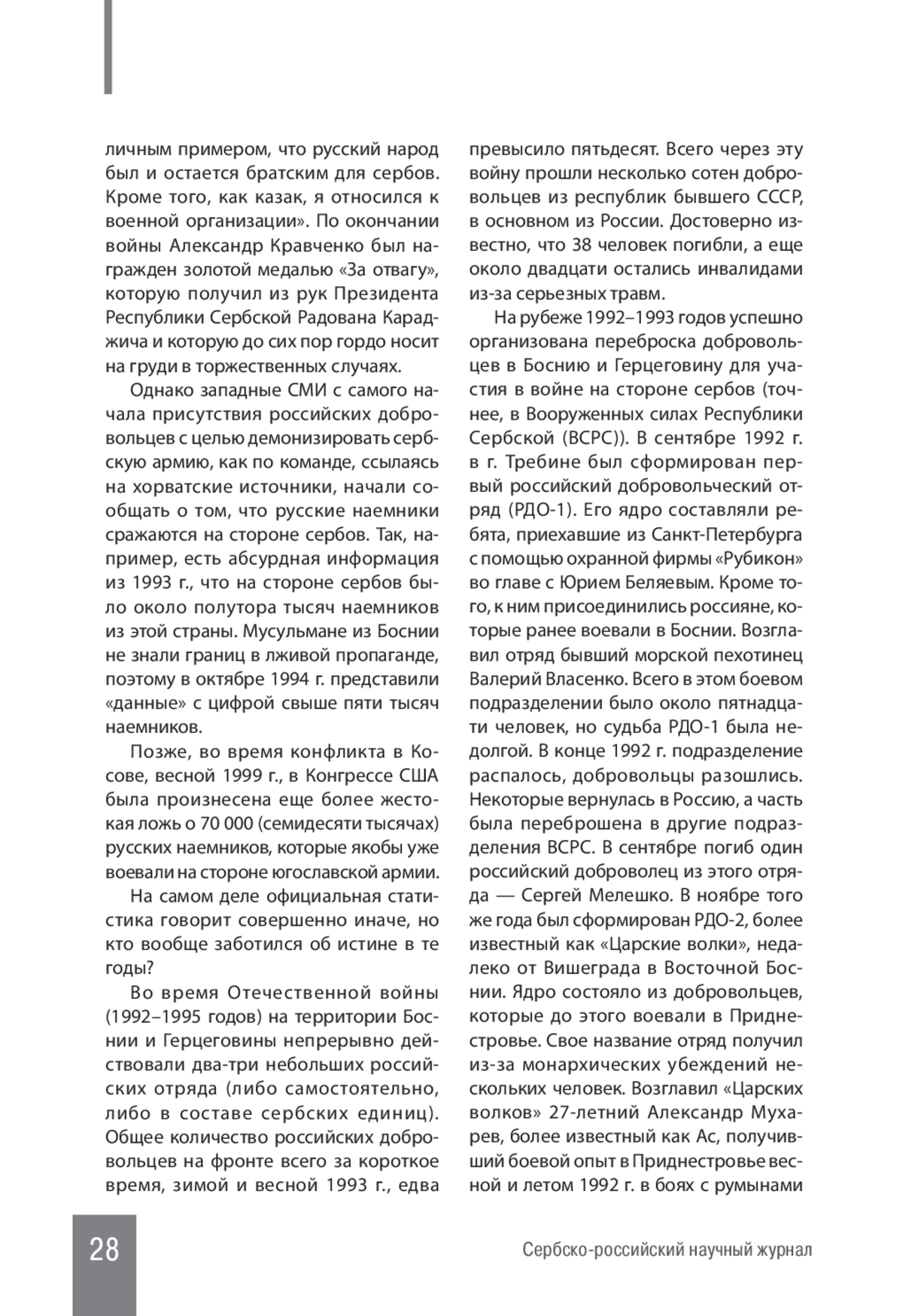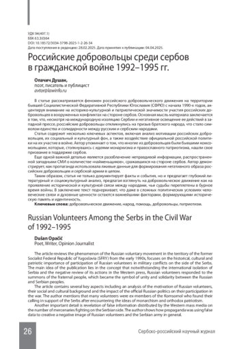 ОПАЧИЧ Д. РОССИЙСКИЕ ДОБРОВОЛЬЦЫ СРЕДИ СЕРБОВ В ГРАЖДАНСКОЙ ВОЙНЕ 1992–1995 ГГ. // СЕРБСКО-РОССИЙСКИЙ НАУЧНЫЙ ЖУРНАЛ. 2025. № 1-2