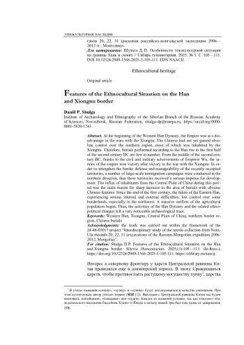 ШУЛЬГА Д. П. ОСОБЕННОСТИ ЭТНОКУЛЬТУРНОЙ СИТУАЦИИ НА ГРАНИЦЕ ХАНЬ И СЮННУ // СИБИРЬ ГУМАНИТАРНАЯ. 2025. № 3 (11)