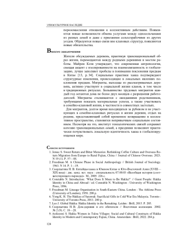 1. Jemec S. Sweet Return and Bitter Memories: Rethinking Coffee Culture and Overseas Return Migration from Europe to Rural Fujian, China // Journal of Chinese Overseas. 2023. N 19 (1). P. 57—88.
