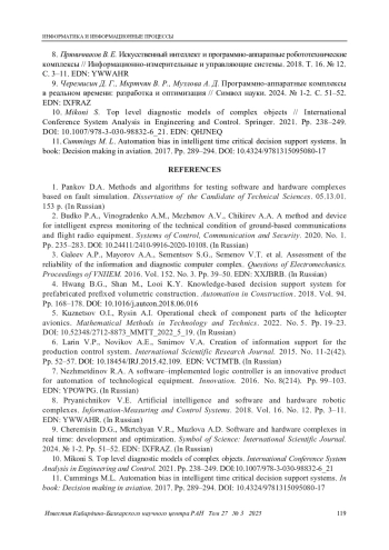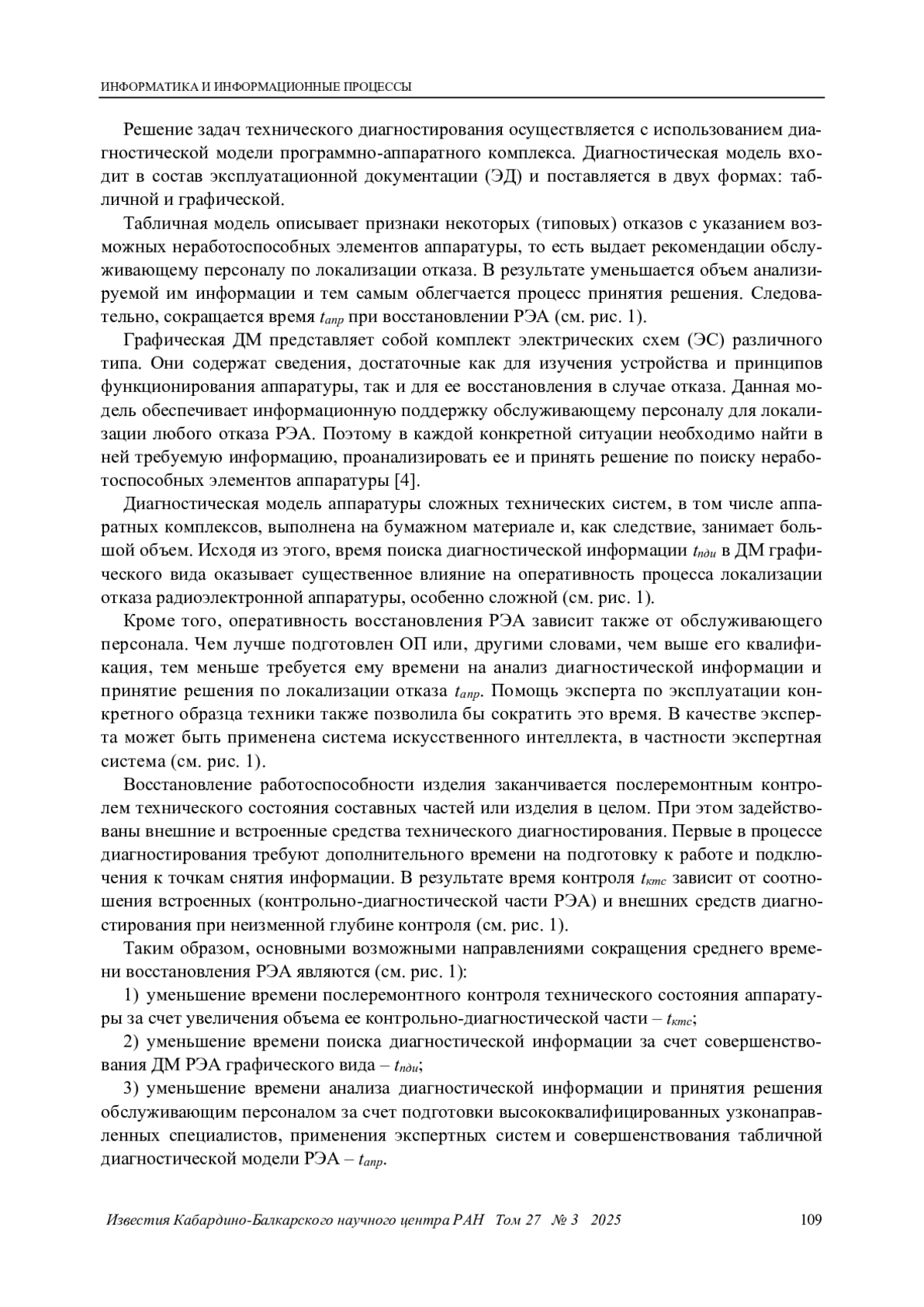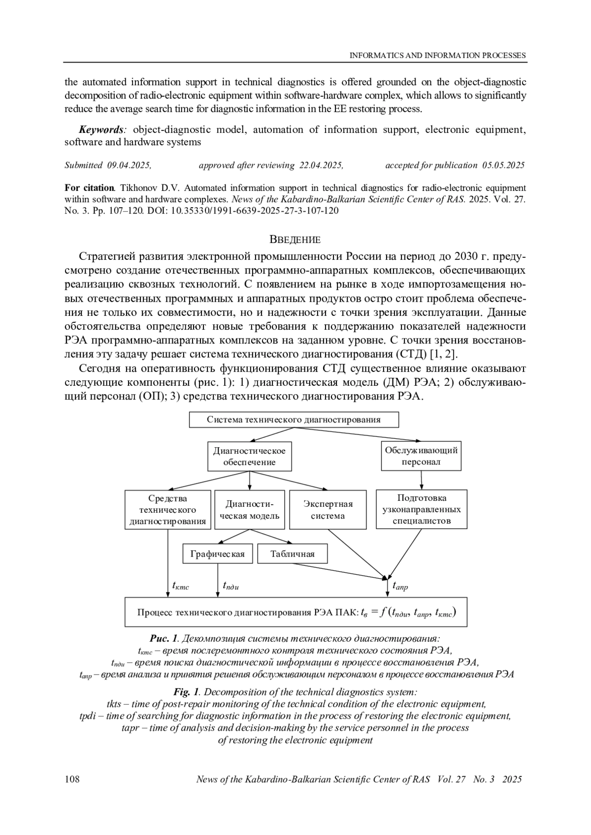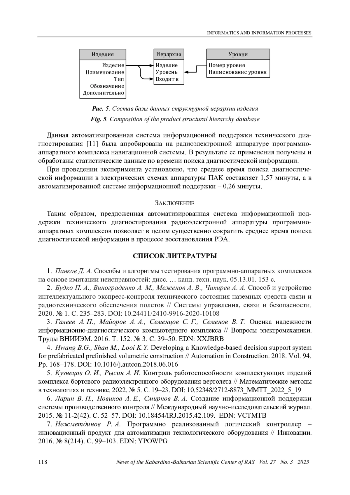 ТИХОНОВ Д. В. АВТОМАТИЗИРОВАННАЯ СИСТЕМА ИНФОРМАЦИОННОЙ ПОДДЕРЖКИ ТЕХНИЧЕСКОГО ДИАГНОСТИРОВАНИЯ РАДИОЭЛЕКТРОННОЙ АППАРАТУРЫ ПРОГРАММНО-АППАРАТНЫХ КОМПЛЕКСОВ // ИЗВЕСТИЯ КАБАРДИНО-БАЛКАРСКОГО НАУЧНОГО ЦЕНТРА РАН. 2025. ТОМ 27 № 3