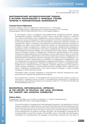 Статья: БИОГРАФИЧЕСКИЙ МЕТОДОЛОГИЧЕСКИЙ ПОДХОД В ИСТОРИИ ПОЛИТИЧЕСКИХ И ПРАВОВЫХ УЧЕНИЙ: ПОНЯТИЕ И ПОЗНАВАТЕЛЬНЫЕ ВОЗМОЖНОСТИ (2025)