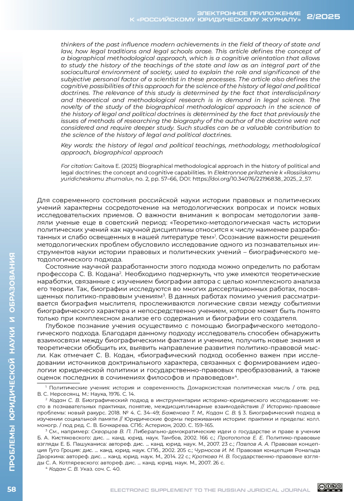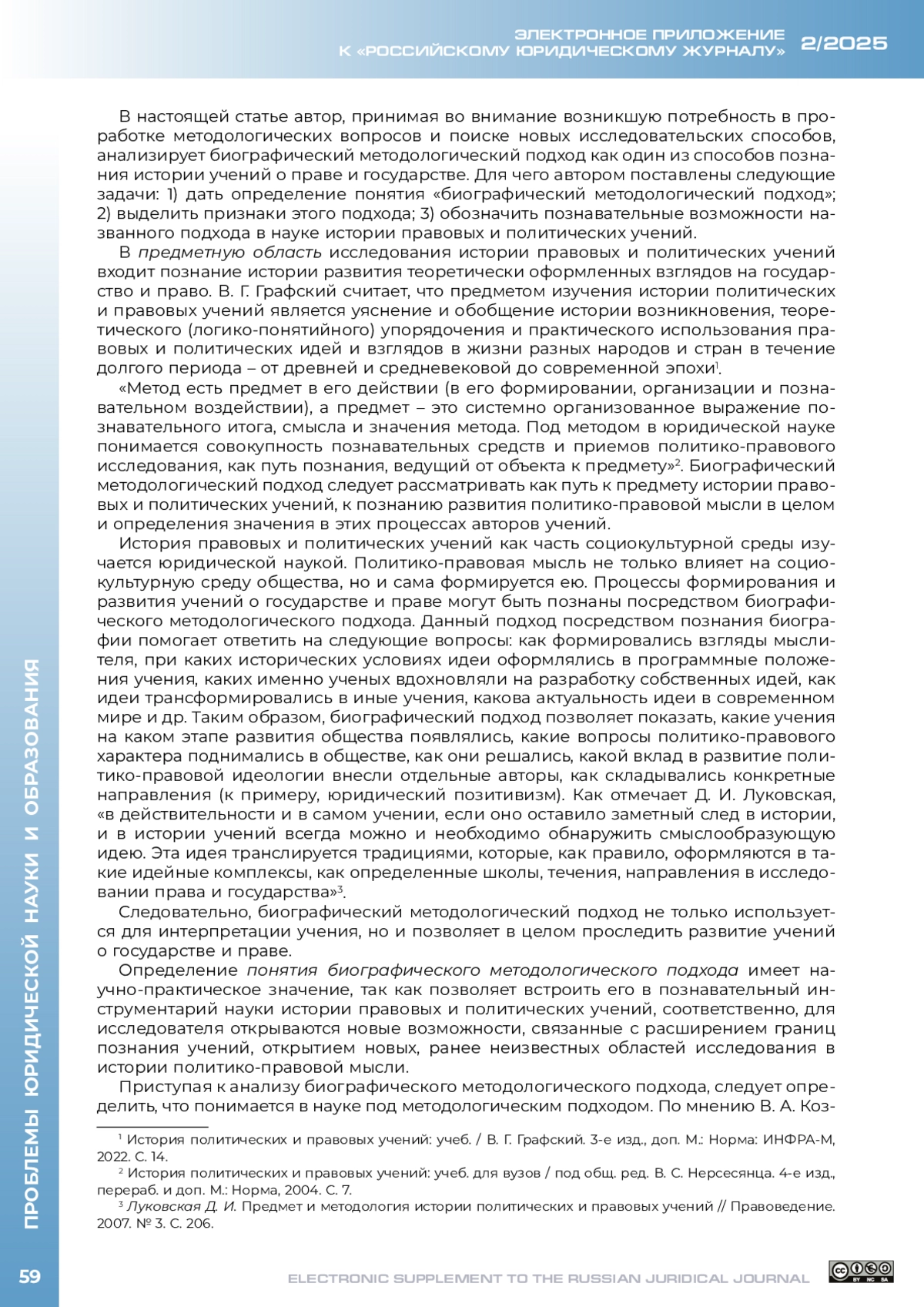ГАИТОВА Е. Р. БИОГРАФИЧЕСКИЙ МЕТОДОЛОГИЧЕСКИЙ ПОДХОД В ИСТОРИИ ПОЛИТИЧЕСКИХ И ПРАВОВЫХ УЧЕНИЙ: ПОНЯТИЕ И ПОЗНАВАТЕЛЬНЫЕ ВОЗМОЖНОСТИ // ЭЛЕКТРОННОЕ ПРИЛОЖЕНИЕ К РОССИЙСКОМУ ЮРИДИЧЕСКОМУ ЖУРНАЛУ. 2025. № 2