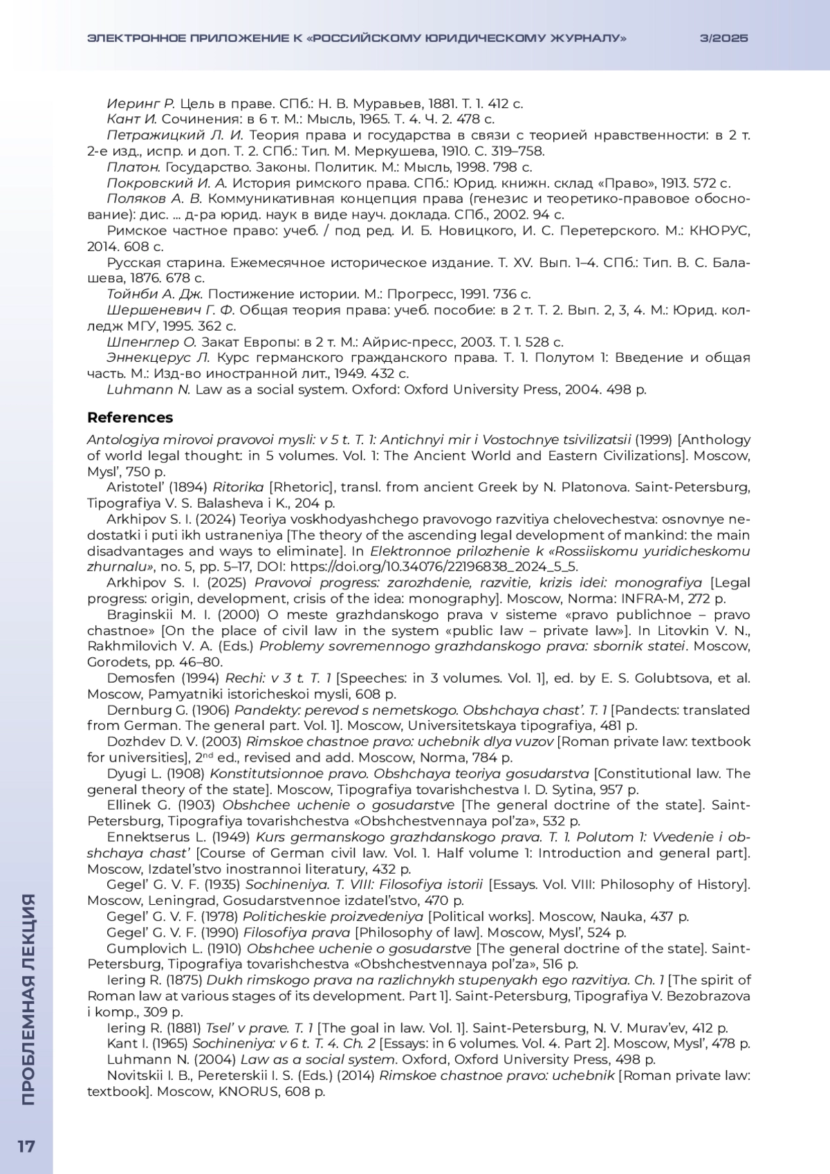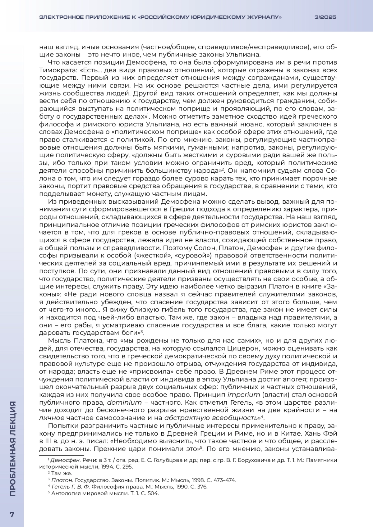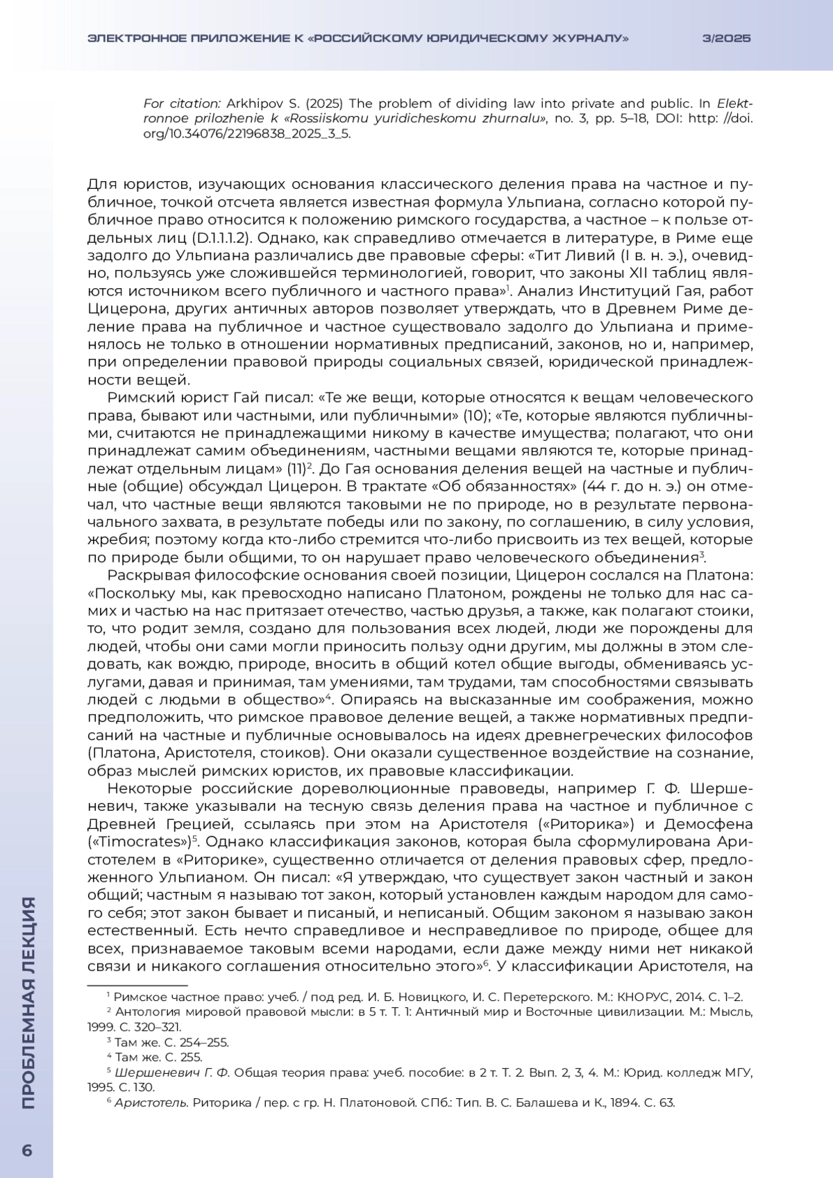 АРХИПОВ С. И. ПРОБЛЕМА ДЕЛЕНИЯ ПРАВА НА ЧАСТНОЕ И ПУБЛИЧНОЕ // ЭЛЕКТРОННОЕ ПРИЛОЖЕНИЕ К РОССИЙСКОМУ ЮРИДИЧЕСКОМУ ЖУРНАЛУ. 2025. № 3
