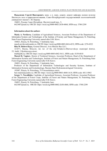 6. Вагизов М. Р., Лобачева В. А. Особенности геоинформационного моделирования при мониторинге лесовосстановления // Леса России: политика, промышленность, наука, образование: Материалы VIII Всероссийской научно-технической конференции, Санкт- Петербург, 24-26 мая 2023 года. Санкт-Петербург: Санкт-Петербургский государственный лесотехнический университет имени С. М. Кирова, 2023. С. 194-196. EDN: GVNLIN