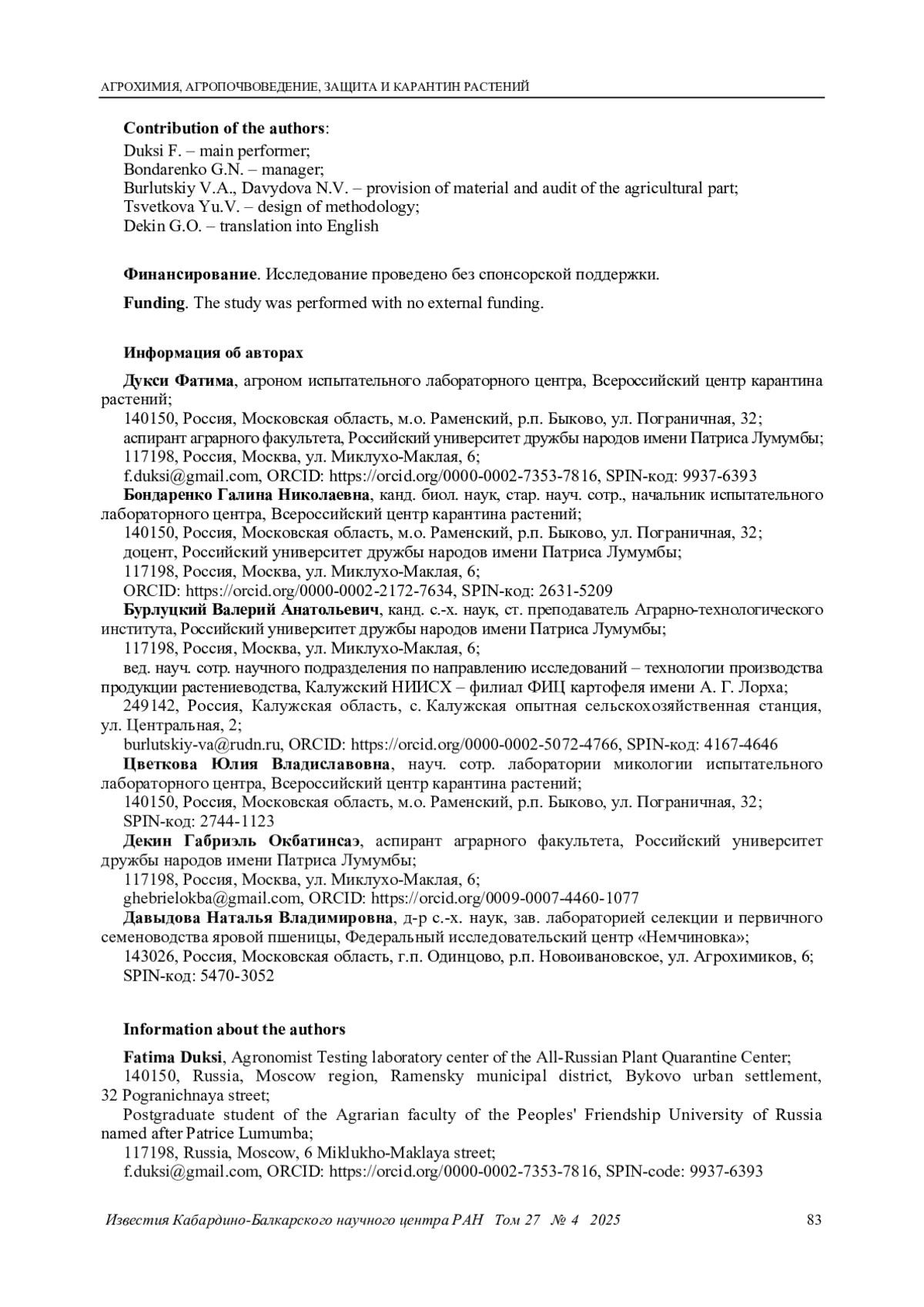 6. Пигалов А. В., Соловьев А. А., Гарибян Ц. С. Влияния грибов рода Fusarium на урожайность и качество пшеницы и тритикале и возможности использования РНКинтерференции и малых РНК в борьбе с грибными заболеваниями // Международный конгресс “VIII Съезд Вавиловского общества генетиков и селекционеров, посвященный 300-летию российской науки и высшей школы”. Сборник тезисов. Санкт-Петербург, 2024. С. 663. Pigalov A.V., Soloviev A.A., Garibyan Ts.S. Effects of fusarium fungi on the yield and quality of wheat and triticale and the possibility of using RNA interference and small RNA in the fight against fungal diseases. In: International Congress “VIII Congress of the Vavilov Society of Geneticists and Breeders, dedicated to the 300th anniversary of Russian science and higher education”. Collection of abstracts. St. Petersburg, 2024. P. 663. (In Russian).
